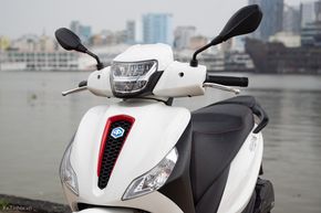 Từ phía trước, một trong những điểm thay đổi đầu tiên có thể ngay lập tức nhận ra được nằm ở hệ thống đèn chiếu sáng của xe nay được nâng cấp lên đèn LED 2 tầng, tương tự như nhiều mẫu xe khác của Piaggio trong thời gian gần đây. Thiết kế này giúp cho cái nhìn từ phía trước trở nên thanh thoát và hiện đại hơn.
