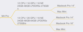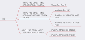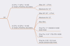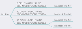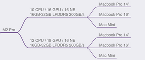 → Pro sinh ra để phục vụ nhu cầu user bao gồm Base phổ thông, nhưng nhu cầu cao cấp hơn hẳn, mọi cấu hình của Pro nhìn chung gần gấp đôi Base, linh hoạt, cơ động nhanh. Lúc này hệ thiết bị bắt đầu có sự đơn giản hóa, không còn thấy iMac, iPad Pro. Bởi vì Chip hiệu năng cao, thì đem lên thiết bị mang tính di động và phục vụ nhu cầu user cơ bản để làm gì vì với sức mạnh đó, phần cứng nhiều hơn, thiết kế cho Base đã không còn phù hợp. Đây là gọi là sự phân cấp Chip đến thiết bị.