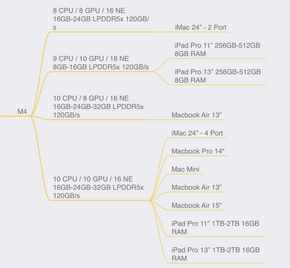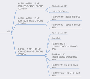 - Bài viết đó khá khô khan về thống kê nhưng mô tả rất trực quan cách mà một con SoC (System on a Chip) Apple Silicon hoạt động và sự phân cấp của chúng qua các Line (Base-Pro-Max-Ultra) và điểm cải tiến qua các năm giữa M12345 và sự kế thừa Line trong cùng dòng M như thế nào.