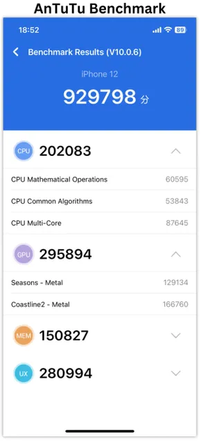 Dưới đây là những kết quả bài test điểm hiệu năng của iPhone 12: