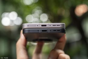 Cạnh đáy thiết bị có khay SIM, mic thu âm, cổng sạc USB-C, loa ngoài và hai dải anten.