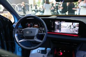 Audi Q6 e-tron mang đậm triết lý thiết kế "tập trung cho người dùng" với hệ thống màn hình cong hướng về phía người lái. Trang bị tiêu chuẩn hệ thống màn hình hiển thị thông tin trên kính chắn gió, màn hình kỹ thuật số Audi Virtual Cockpit plus 11,9 inch hiển thị đa dạng các thông tin, bao gồm cả bàn đồ dẫn đường. Vị trí trung tâm sẽ là màn hình giải trí kích thước 14.5 inch, tích hợp đầy đủ các kết nối với điện thoại thông minh.