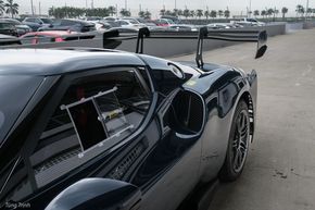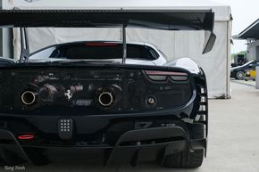 Các chi tiết khí động học trên 296 Challenge sẽ có phần hoàn thiện là sơn bóng hoặc màu Carbon trần như cánh gió lớn phía sau. Nhưng hầu hết chúng đều được làm từ sợi Carbon và phần còn lại được làm bằng composite nhẹ, lý giải cho điều này phần lớn nhằm phục vụ cho yếu tố kỹ thuật và cả sự bền bỉ thay vì thẩm mỹ khi khoe toàn bộ phần Carbon như trên xe đường phố.