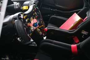 Ferrari 296 Challenge vẫn giữ nguyên vị trí thiết kế Dashboard như trên 296 GTB nhưng đã thay đổi bằng các trang bị cho xe đua chuyên dụng. Ngoài ra, toàn bộ chi tiết bên trong ca-bin cũng được thay đổi để tối ưu trọng lượng như: Loại bỏ toàn bộ vật liệu cách âm, tham lót sàn, nhiều chi tiết là carbon hoặc composite trần - không hoàn thiện bề mặt.