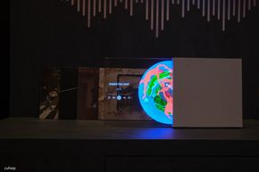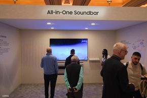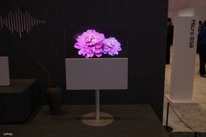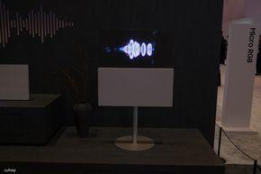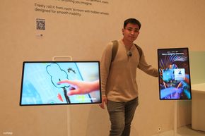 Samsung cũng giới thiệu một mẫu màn hình di động có tên gọi là The Moving Style. Thiết bị này có tích hợp pin với thời lượng khoảng 3 giờ, được gắn trên một chân đế có bánh xe, cho phép người dùng đẩy đi khắp nhà, từ bếp vào phòng khách. Màn hình có thể trượt lên xuống linh hoạt, đóng vai trò như một chiếc TV phụ hoặc màn hình máy tính di động.