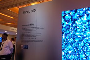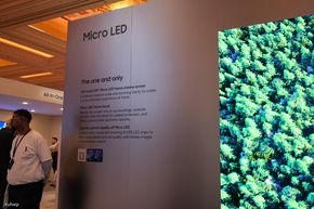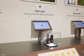 Samsung cũng dành một khu vực riêng để giải thích về sự khác biệt công nghệ giữa các loại đèn nền. Người xem có thể thấy sự so sánh trực quan giữa LED thường, Mini LED và Micro RGB. Các bóng đèn Micro RGB có kích thước nhỏ hơn rất nhiều so với các thế hệ trước. Việc thu nhỏ kích thước bóng đèn giúp tăng mật độ local dimming zone, từ đó kiểm soát ánh sáng chính xác hơn, mang lại độ tương phản cao và màu sắc rực rỡ hơn cho nội dung hiển thị.