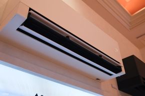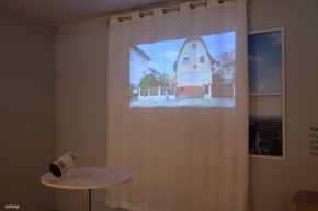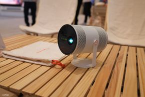 Một trong những thiết bị thú vị khác tại First Look là máy chiếu The Freestyle+ thế hệ mới. Điểm nâng cấp sáng giá nhất là khả năng AI Reframing. Máy chiếu có thể tự động phân tích bề mặt chiếu và điều chỉnh khung hình ngay lập tức. Ngay cả khi người dùng di chuyển máy chiếu hoặc chiếu lên các bề mặt không phẳng, méo mó, thiết bị vẫn tự động lấy nét và cân chỉnh lại tỷ lệ khung hình chuẩn xác mà không cần thao tác thủ công.