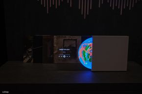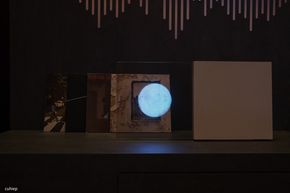 Điểm mình ấn tượng trong việc trưng bày sản phẩm này là phần chân đế được dựng kiểu giá vẽ tranh, tạo cảm giác như một tác phẩm nghệ thuật hơn là một thiết bị điện tử thông thường.