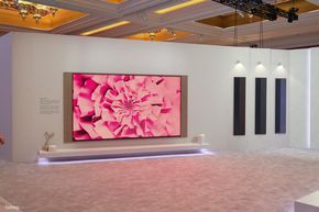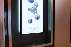 Bên cạnh đó, dòng TV The Frame Pro cũng được trưng bày với khả năng hiển thị tranh ảnh có độ chân thực cao. Màn hình của dòng sản phẩm này có độ nhám và khả năng chống phản chiếu tốt, khiến hình ảnh hiển thị trông rất giống chất liệu tranh thật thay vì một tấm nền điện tử phát sáng.