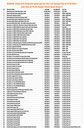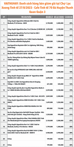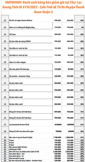 Dưới đây là danh sách các sản phẩm được bán siêu giảm giá. Anh em có mặt tại event ở thời điểm bán (cột giờ bán) sẽ được quyền mua các món này. Nếu có hơn 2 người muốn mua thì BTQ sẽ bốc thăm ngẫu nhiên chọn người nào may mắn hơn thì được mua.
