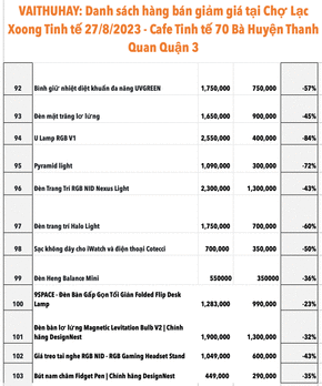 Danh sách hàng bán siêu giảm giá