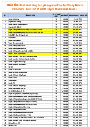 Trong nhà anh em có món đồ công nghệ nào không dùng đến hay muốn đổi món mới… hãy mang nó đến Chợ Lạc Xoong công nghệ diễn ra vào ngày 27/8 này ở Café Tinh tế - 70 Bà Huyện Thanh Quan Quận 3. BQT cũng đã kêu gọi được các thương gia cùng tham gia vào chợ này nên sẽ có những món hàng công nghệ giảm giá và siêu giảm giá. Mình liệt kê bên dưới cho anh em tham khảo.