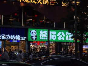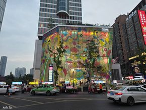 Đi xíu thấy một trong những nơi hot để check in tại Thành Đô, IFS và biểu tượng con panda đang leo lên toà nhà.