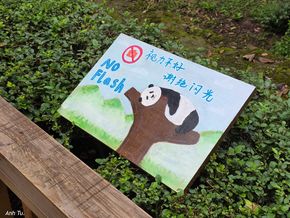 Một bảng hiệu cấm chụp panda với đèn flash, xuyên suốt đường đi xem mình thấy rất nhiều bảng hiệu này.