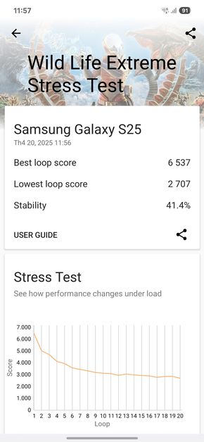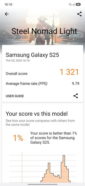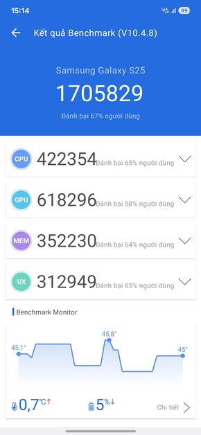 Dưới đây là những ảnh chụp màn hình các bài test điểm hiệu năng mình đã thực hiện trên Samsung Galaxy S25:
