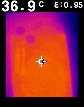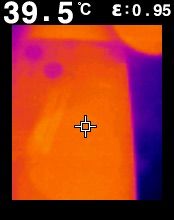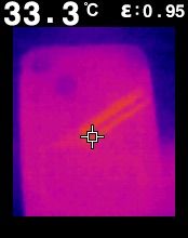 Dưới đây là những hình ảnh chụp nhiệt độ của iPhone 13 khi mình sử dụng củ sạc Bộ sạc MagSafe (hình ảnh được sắp xếp theo thứ tự từ trái sang phải tương ứng với các mốc thời gian trong bảng kết quả):
