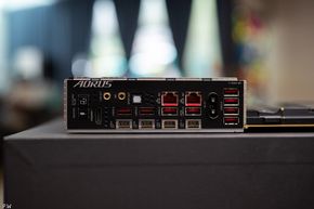 Mọi kết nối vào và ra mainboard, lẽ ra nằm ở mặt trên cạnh phải bo mạch, thì giống mọi phiên bản Aorus Xtreme khác, đều được đặt ở cạnh sườn của bo mạch, giấu dây rất dễ dàng, nhưng đổi lại là sẽ cần một thùng máy kích thước lớn một chút để có không gian: