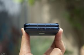 Cạnh đáy máy cũng có mic thu âm, cổng sạc USB-C và loa ngoài. Khi xem video/nghe nhạc,... thì cả loa thoại lẫn loa ngoài của máy đều phát âm thanh.
