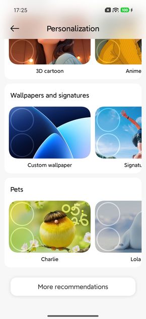 Màn hình phụ của Xiaomi 17 Pro cũng có nhiều kiểu hình nền với thú cưng ảo rất thú vị (gấu trúc, chim, mèo, chó,…). Chú gấu trúc trong hình nền có tính năng tương tác với người dùng khi người dùng giơ hai ngón tay (say hi) hoặc bắn tim nhưng hiện tại tính năng này chưa hoạt động.