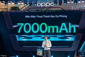 Đại diện OPPO cũng so sánh A6 Pro pin 7000mAh với một viên pin dự phòng có dung lượng 5000mAh, máy còn mỏng hơn.