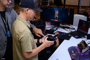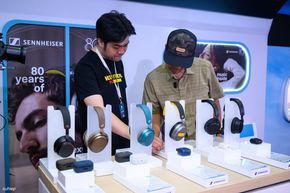 Ở ngay cạnh đó là một góc trình diễn thiết bị âm thanh dành cho gamer/streamer. Những cặp tai nghe có dây để sử dụng với máy tính cá nhân cũng được trình diễn, như HD 620S hay HD 550: