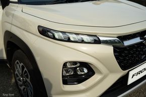 Ngoại hình của FronX với thiết kế đèn 2 tầng, bên trên sẽ là đèn định vị ban ngày và bên dưới là đèn pha với cụm 3 đèn chiếu sáng chính rất cá tính. Xe được tạo hình với nhiều đường nét nổi khối, mặt ca-lăng kiểu 3D mang đến dáng vẻ cứng cáp.