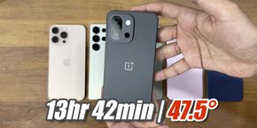 Vào ngày 7/5/2025, kênh YouTube công nghệ TechDroider với 1 triệu lượt theo dõi đã thực hiện bài test pin OnePlus 13T - mẫu flagship nhỏ gọn của OnePlus sử dụng Qualcomm Snapdragon 8 Elite với dung lượng pin lên đến 6.260 mAh. Kết quả bài test pin cho thấy OnePlus 13T có thời lượng sử dụng pin lâu hơn những mẫu flagship khác như: iPhone 16 Pro Max, Samsung Galaxy S25 Ultra, Google Pixel 9 Pro XL, Xiaomi 15 Pro và OnePlus 13. Thông tin này cũng được trích dẫn lại bởi trang Gizmochina và Notebookcheck.