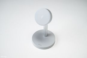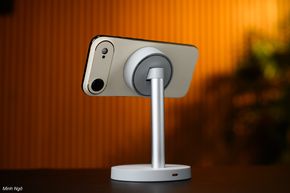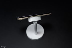 Vùng lưng sạc tích hợp hệ thống nam châm với lực hút mạnh cho khả năng bám chắc. Mình có thử dùng 1 tay để tháo điện thoại nhưng lực hút khá chắc chắn. Điều này đảm bảo điện thoại nằm vững trên thiết bị mà không lo lắng bị rơi rớt. Một điểm đặc trưng khác là phần lưng sạc này có thể điều chỉnh góc nghiêng tới 35 độ, cho phép anh em điều chỉnh góc nhìn phù hợp, nhất là anh em nào thích sử dụng Standby, vốn là một tính năng cũng được hỗ trợ bởi đế sạc này.