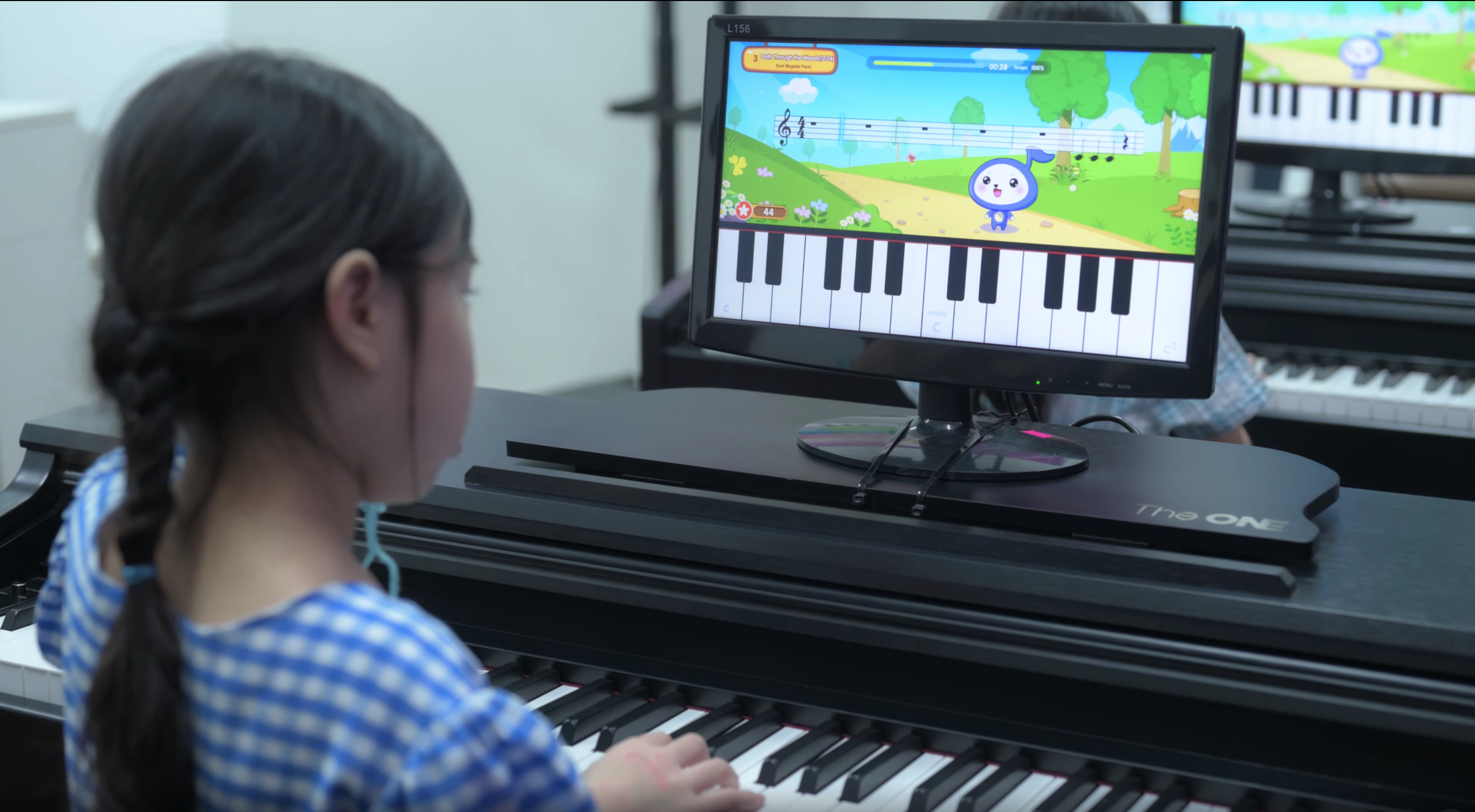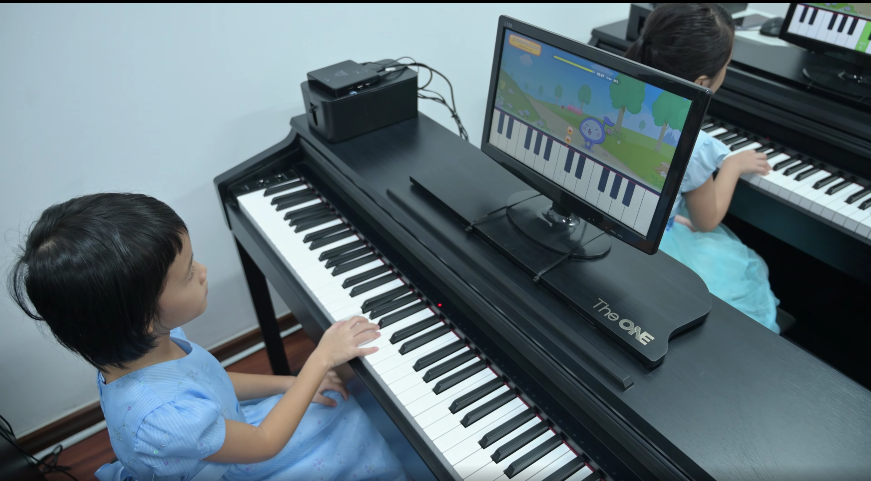- Tại nhà, khi kết hợp với chương trình học trên máy tính bảng, mỗi cây đàn piano thông minh The ONE lúc này như 1 trợ giảng Ảo miễn phí, kèm riêng cho học viên, cải thiện được việc phụ thuộc vào giáo viên kèm tại nhà, đồng thời tiết kiệm chi phí so với cách học truyền thống cá nhân 1:1. Khi tập với chương trình học, bé tập các bài đã học trên lớp bằng nhiều chế độ từ dễ đến khó, app cũng tổng kết và xếp hạng thời gian luyện tập ở nhà để so sánh với các bạn trên lớp. Điều này giúp củng cố đam mê và tăng tính cạnh tranh lành mạnh cho học viên.
