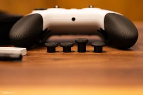 Ngoài ra, bên trong hộp, người dùng được kèm nhiều loại đầu cần analog thumbstick cap: thấp/cao, lõm đỡ trượt ngón tay hay lồi tăng độ chính xác. Điều này tối ưu cho từng kiểu game, ví dụ như stick cao, lồi cho aim ở FPS, stick thấp lõm cho di chuyển.