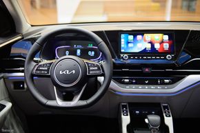 Ở ngôn ngữ thiết kế mới, Carens thể hiện những đường nét thiết kế dạng phẳng trong khoang người lái, tạo được sự tập trung và dễ dàng sử dụng khi cần thao tác. Đối với phiên bản này, các trang bị tiện nghĩ cũng nằm ở mức cao nhất với: màn hình giải trí dạng cảm ứng kích thước 10.25 inch, hỗ trợ kết nối Android Auto và Apple Carplay dạng không dây.