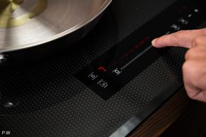 Dải cảm ứng này có thể dùng ngón tay vuốt, hoặc chạm ở đúng vị trí tương ứng từ 0 đến 9. Nói chung thì sẽ luôn có hai lựa chọn phổ biến khi thiết kế bếp điện hay bếp từ. Hoặc mặt số của bếp sẽ hiển thị công suất tương ứng khi lựa chọn. Hoặc các ngưỡng công suất sẽ được chia thành những con số tuyến tính, số càng lớn thì công suất càng lớn, dành cho những người không ước lượng được công suất vận hành của bề mặt cảm ứng điện từ.