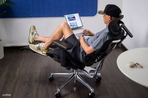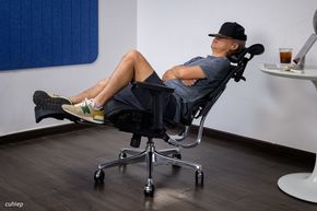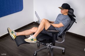 Lưng ghế Manson Atum dùng được nhiều tư thế hơn so với các ghế văn phòng hay ghế công thái học khác, do có phần đỡ chân.