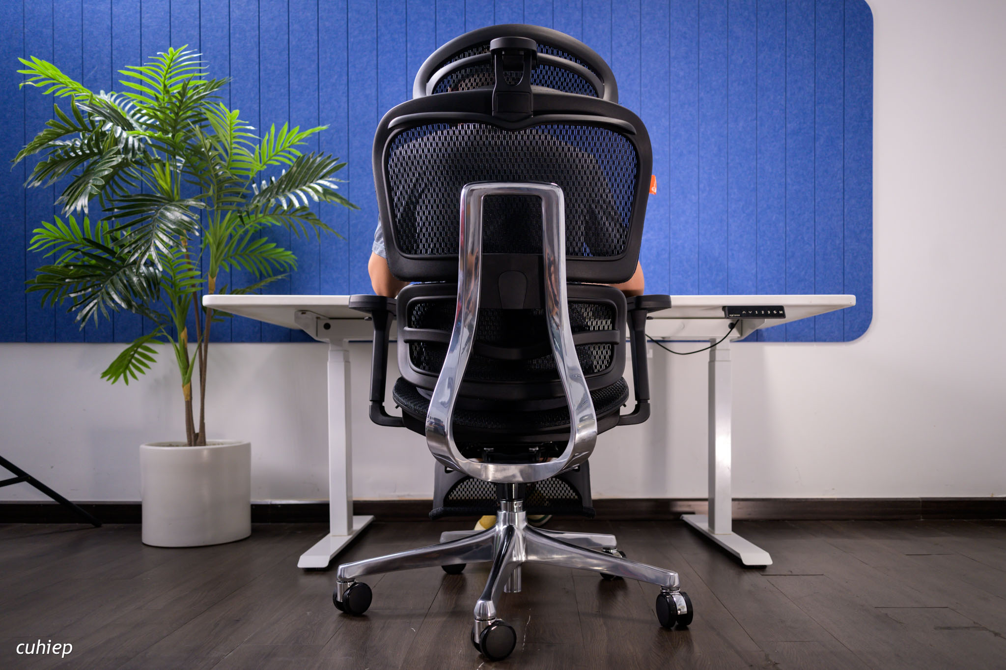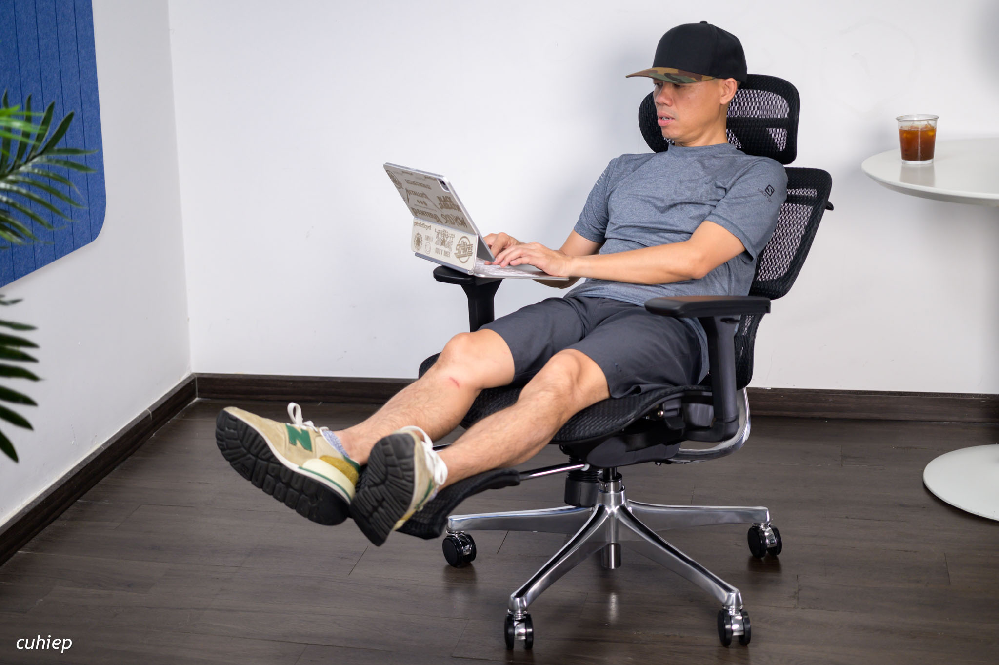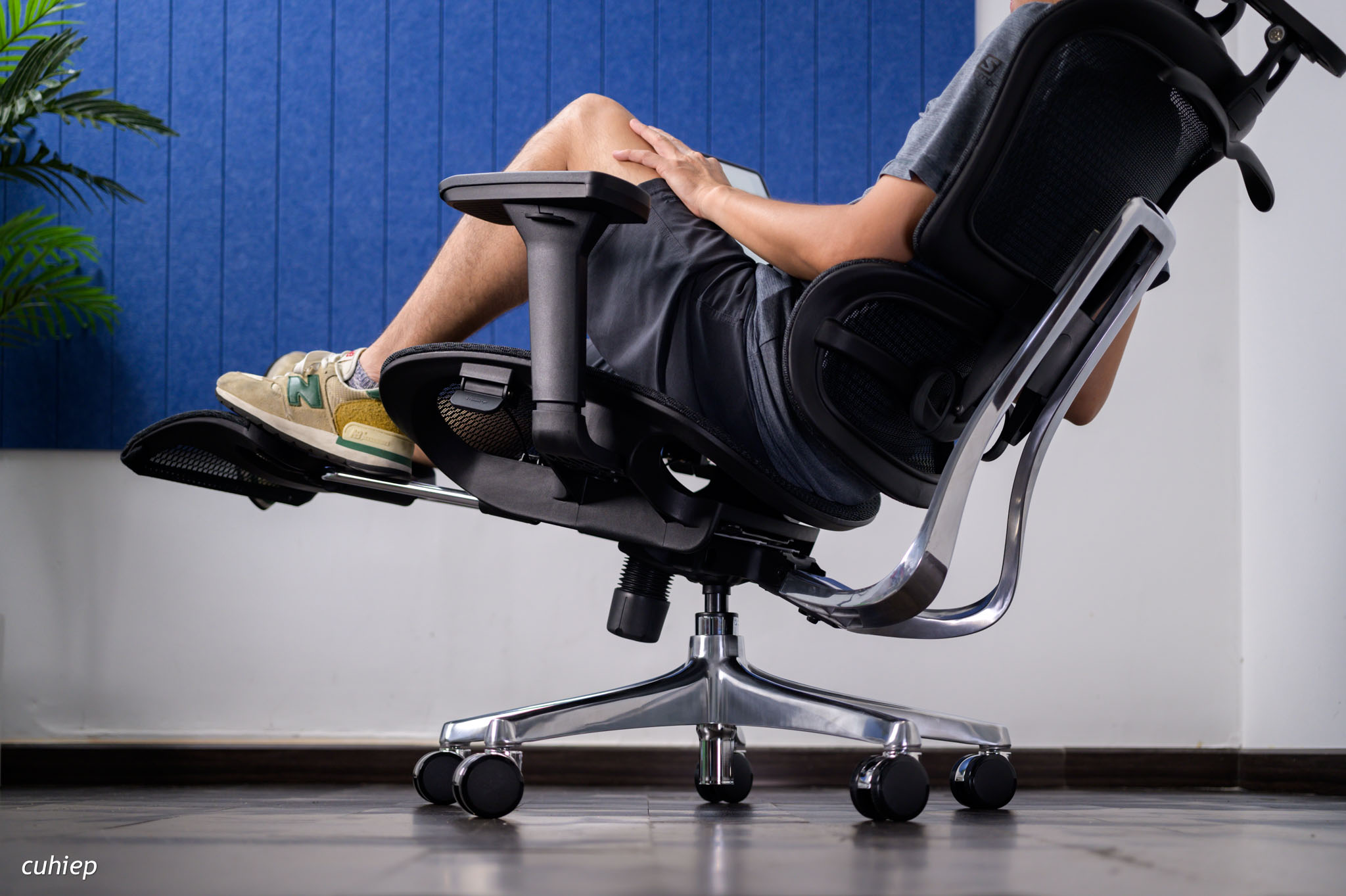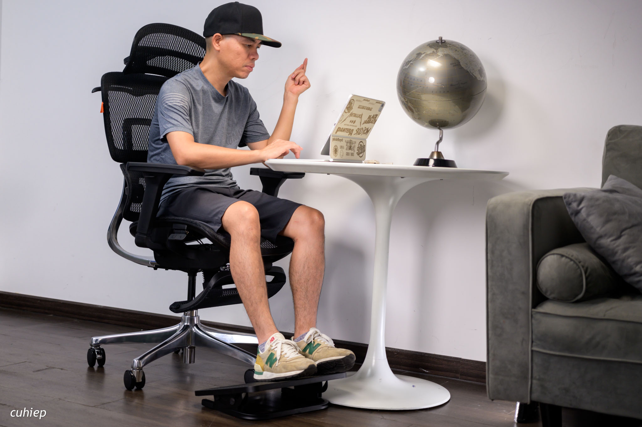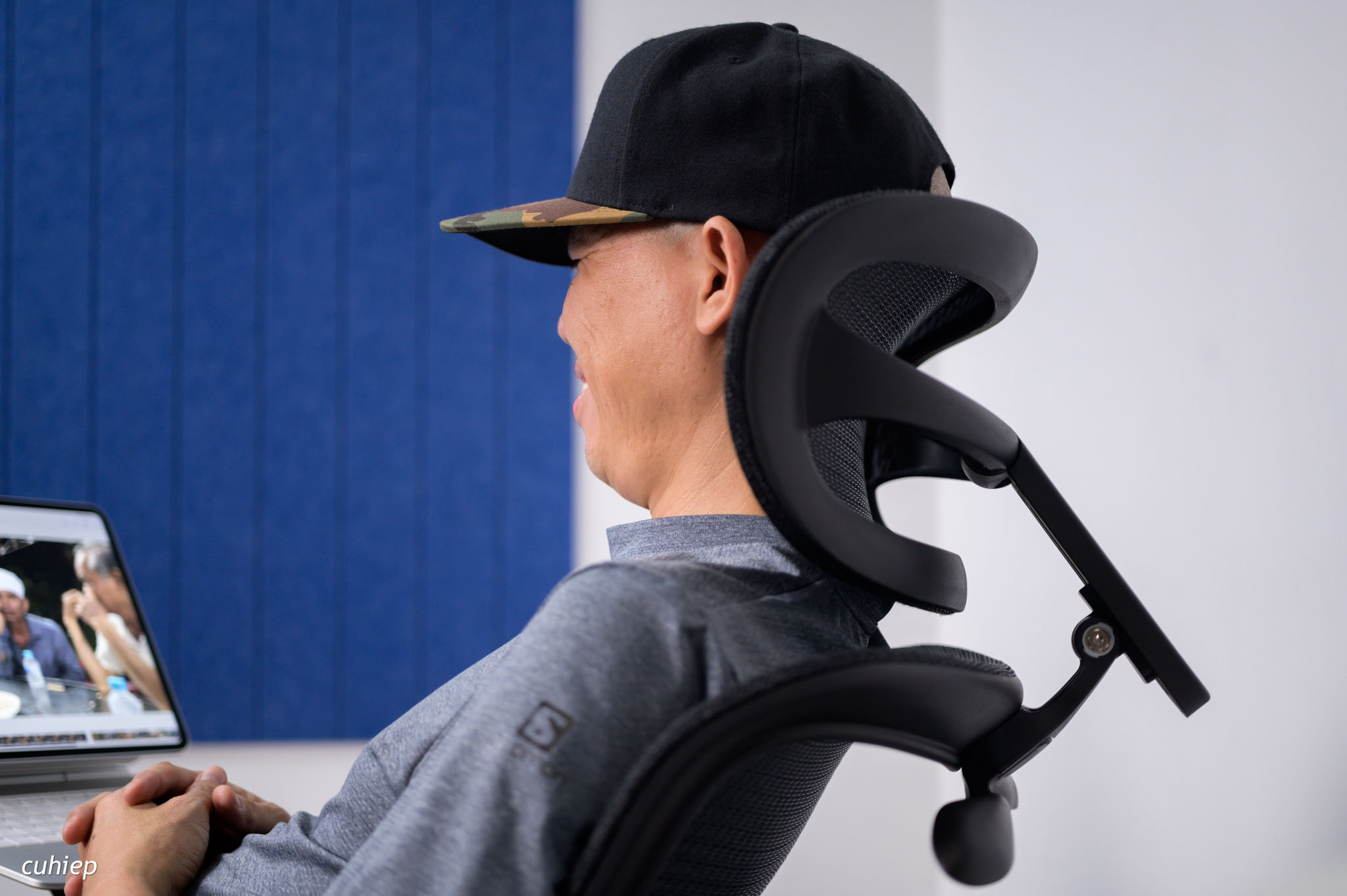 Mình để iPad lên cái tay ghế và ngồi sử dụng trong tư thế lưng và đầu được đỡ toàn bộ. Đây có thể là tư thế thoải mái và lạ nhất trong các ghế mình từng ngồi.