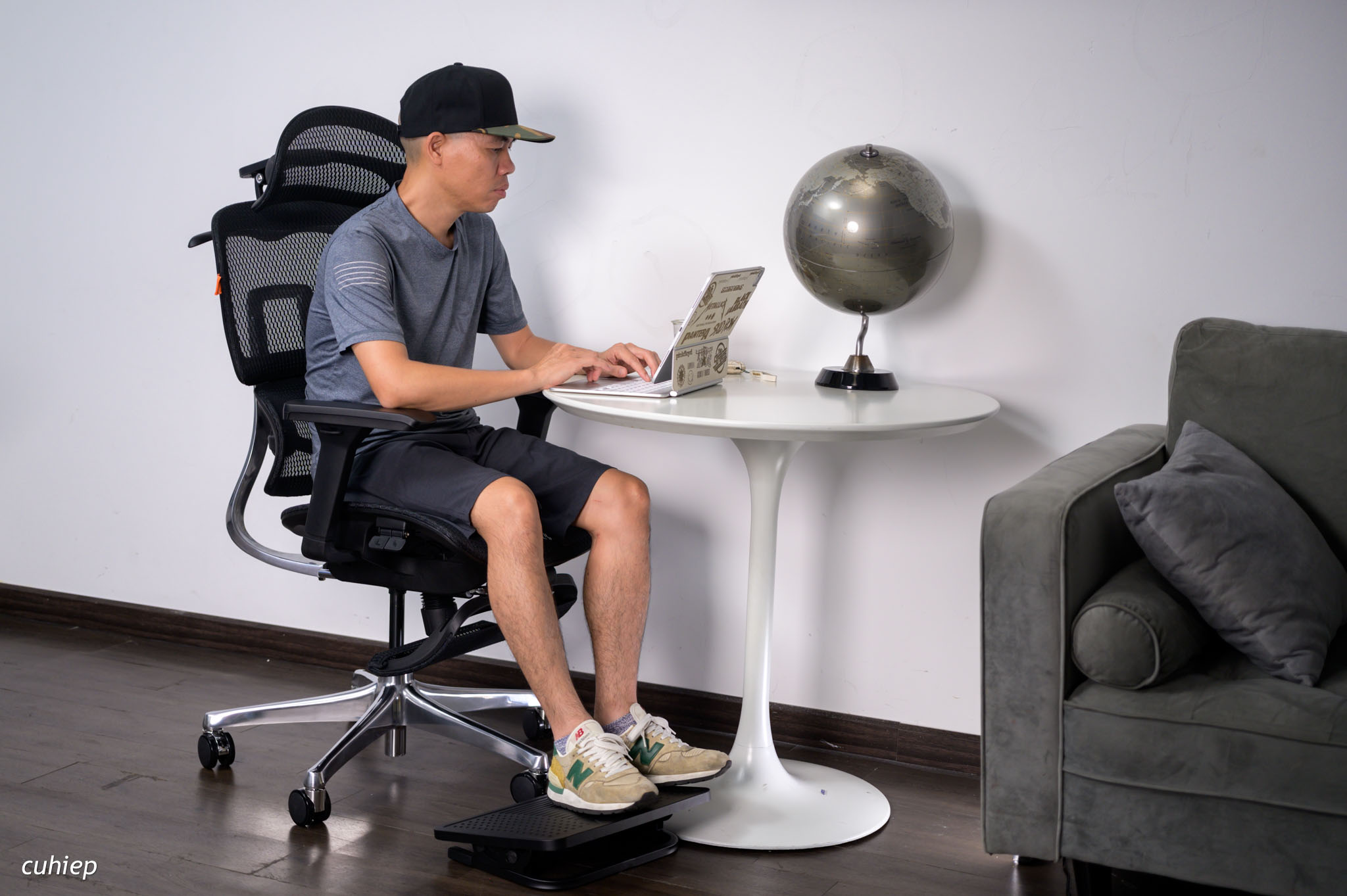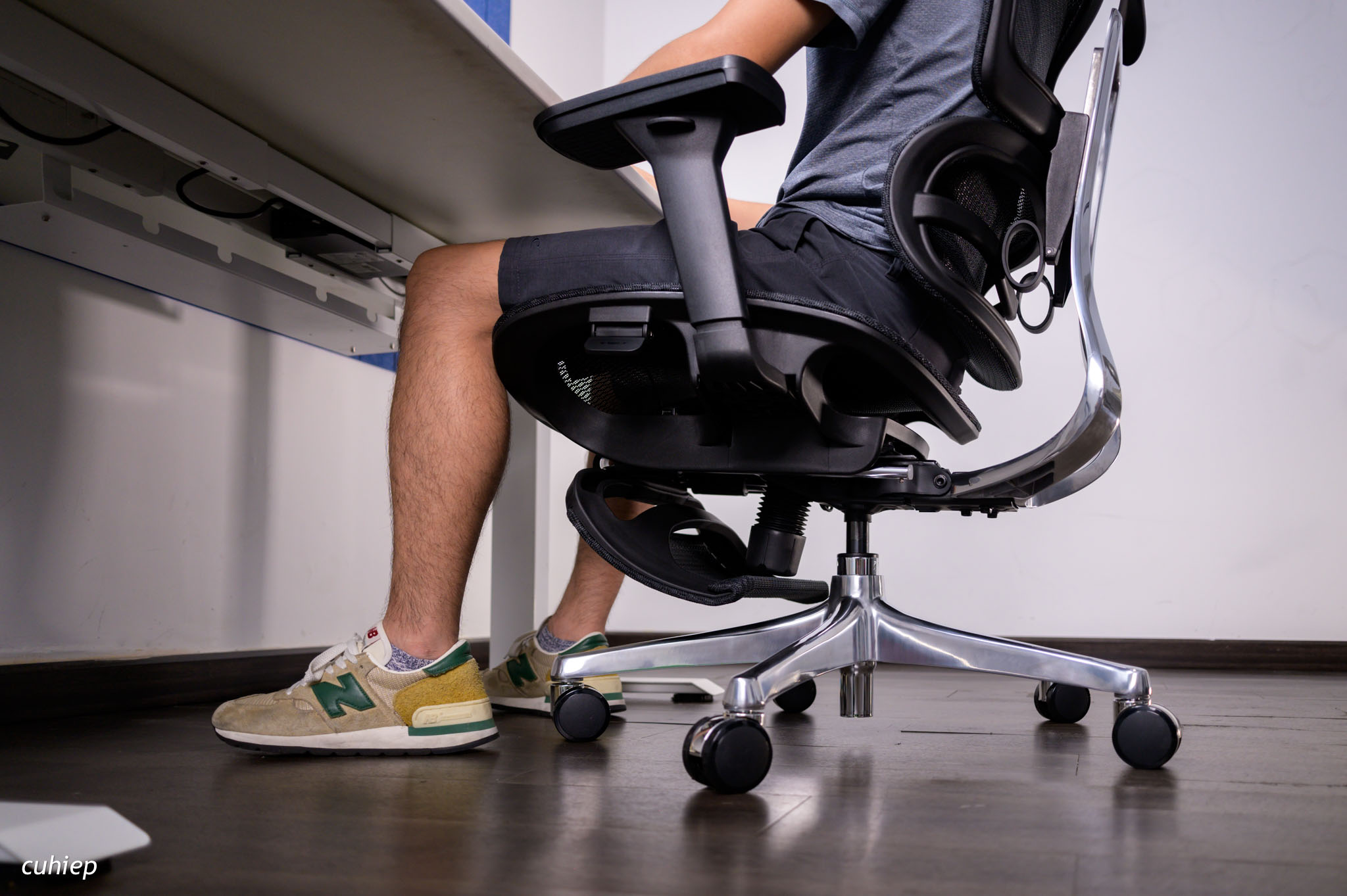 Tuy nhiên hầu hết mặt bàn làm việc ở VN thường khá cao (từ 70cm trở lên) nên anh em phải nâng mặt ghế lên cao hơn để ngồi phù hợp. Lúc này thì anh em sẽ hổng chân và cần phải có kê chân, phần dưới cùng của bài mình sẽ nói thêm về cái này.
