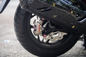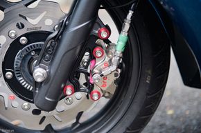 Hệ thống phanh phía trước trang bị bộ phanh Brembo Billet Niken với đĩa phanh Braking là một trang bị “vừa túi tiền” trong mức giá 20 triệu cả trước lẫn sau, đáng nói ở mức độ phụ hợp (với trọng lượng và sức mạnh của chiếc xe) rất cao, không có cảm giác “khô khốc” thay vào đó là sự êm ái nhưng vẫn rất chắc chắn, đây là một trong những bộ phanh độ mình rất thích bởi mức độ bám dính nhưng lại đi kèm với sự êm ái mà nó có.