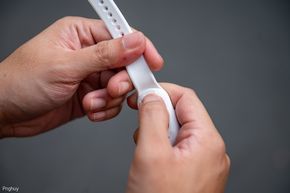 Dây đeo cũng có sự khác biệt. Với bản nhôm thì dây cứng hơn, đặc biệt là khóa cài, mình phải nhấn rất mạnh và chặt thì nó mới vào khớp. Còn với bản gốm, mọi thứ đều nhẹ nhàng, dây mình cũng thấy xịn hơn vì cao su của nó rất mềm, không gây kích ứng da tay. Khóa cài của bản gốm cũng là màu trắng, hoàn thiện thì mình thấy cũng rất giống gốm nhưng chưa thể khẳng định 100%.