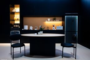 Về thiết kế, khung viền rất mỏng giúp tỉ lệ màn hình so với thân máy đạt khoảng 98%, chân đế kim loại “lưỡi kiếm” linh hoạt cho các kiểu đặt máy khác nhau. Kích thước tổng thể (có chân đế) là 1.667 × 351 × 1.030 mm, trọng lượng khoảng 26,2 kg. Cổng kết nối đa dạng: 3 × HDMI 2.1 (hỗ trợ eARC, ALLM, VRR), USB, LAN, cổng quang, jack 3,5 mm, khe CI+, Wi-Fi 6 và Bluetooth 5.2.